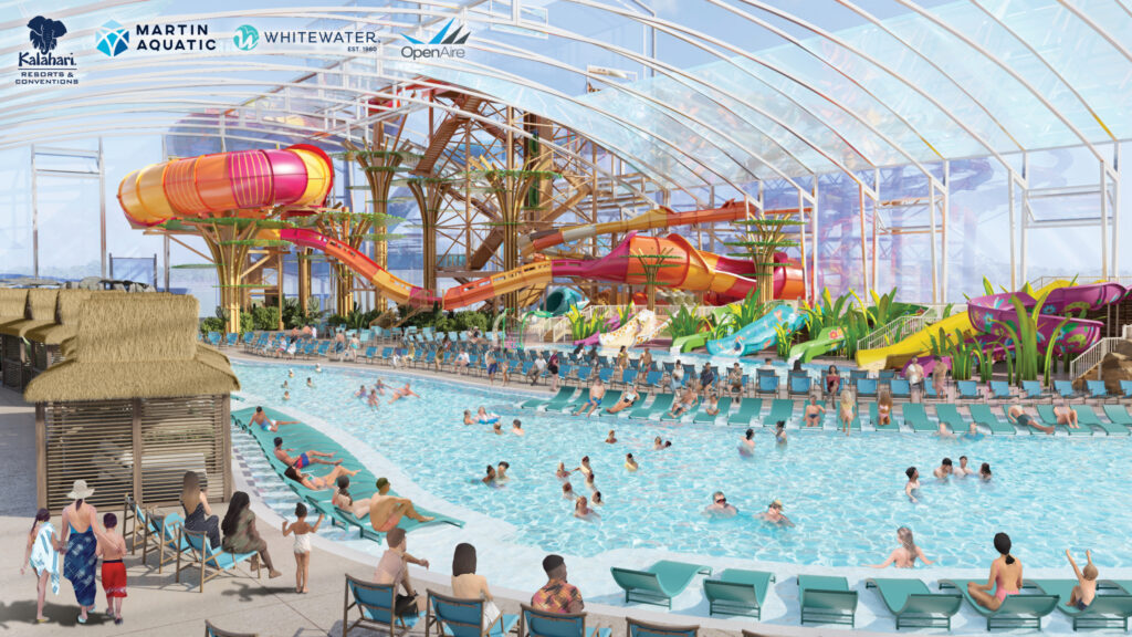 Kalahari Resorts & Conventions is enhancing its Wisconsin Dells location with a significant expansion of its indoor waterpark. This 85 million dollar project involves adding a 7.000-square-foot area featuring a retractable glass roof.