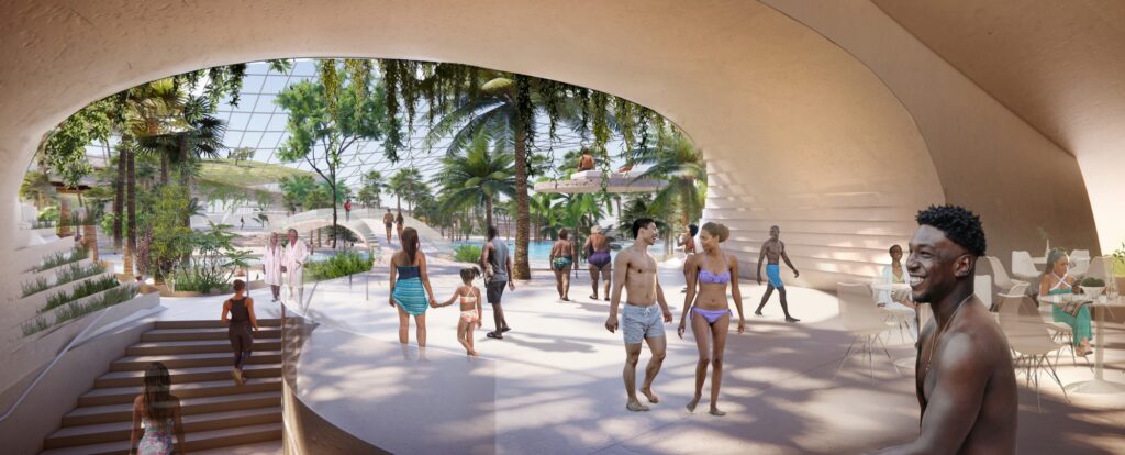 The Tropical Greenhouse named ‘Sanctuary’ is scheduled to open in 2025, It features a vast tropical greenhouse spanning approximately 40.000 square meters. This space will recreate the Amazonian climate, housing diverse flora and fauna native to that region. Visitors will have the unique opportunity to stay overnight in accommodations offering views of the animals and underwater scenes. Complementing the tropical greenhouse, a water park is planned to open in 2026. This facility will be connected to The Sanctuary, allowing guests to swim in an exotic lagoon with a wellness area, providing a seamless blend of aquatic recreation and immersive natural experiences.