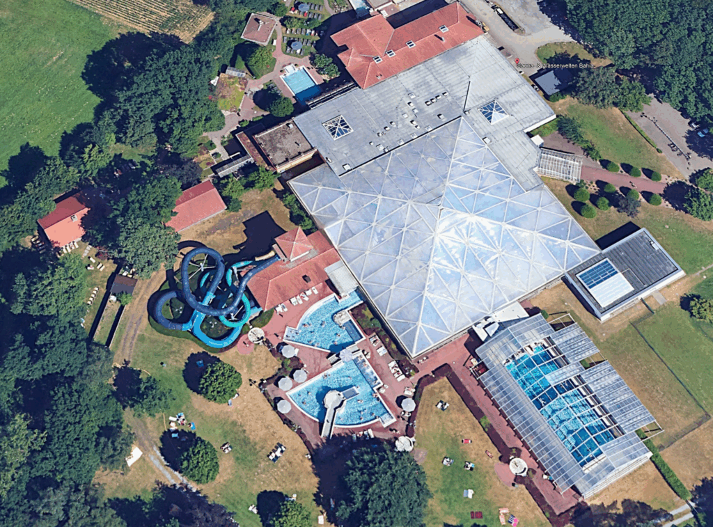 The Nettebad is one of the most visited water park complexes in Europe (more than 700,000 visitors annually), thanks in part to a whole series of slides. And yes, the Nettebad is indeed not within the 50 kilometer zone from the border but about 90 km (but we couldn’t ignore this special slide)