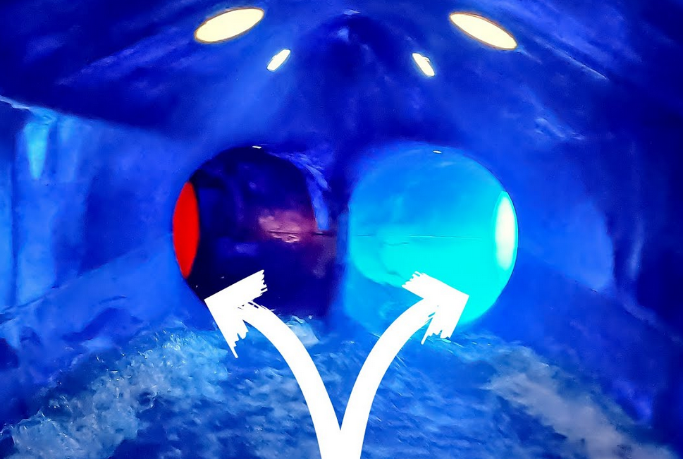 This is a very special slide, but again not so cleverly designed. Halfway down this tire slide, you end up in an intermediate pool where you can choose which slide you take further down. Killing for a high capacity for safety reasons and in addition, this also detracts from your sliding experience because you have to get out of your tire. As far as I know, this is the only one of this type of slide in the world!
